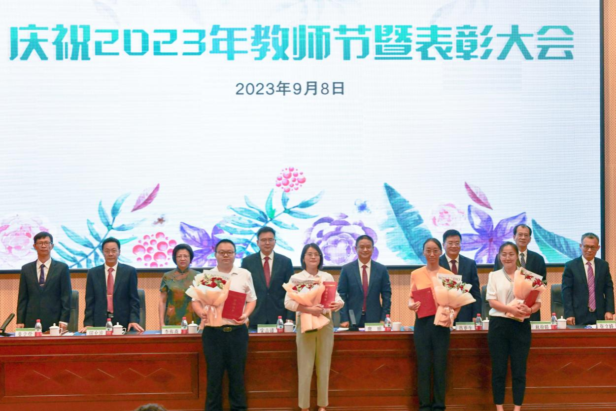 秋菊溢彩,桃李芬芳。9月8日上午,在第39个教师节即将来临之际,学校在白云校区行政楼报告厅召开庆祝2023年教师节暨表彰大会,向辛勤耕耘、无私奉献的全体教职工致以节日的问候,并表彰多位在学校建设和教书育人等方面取得优秀成绩的教师。全体校领导、中层正职干部、受表彰的优秀教师、荣休教师代表、新入职教师代表以及各学院师生代表参加大会。校党委常委、副校长林俊睦主持大会。