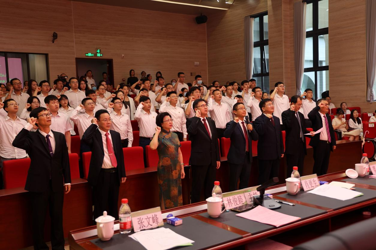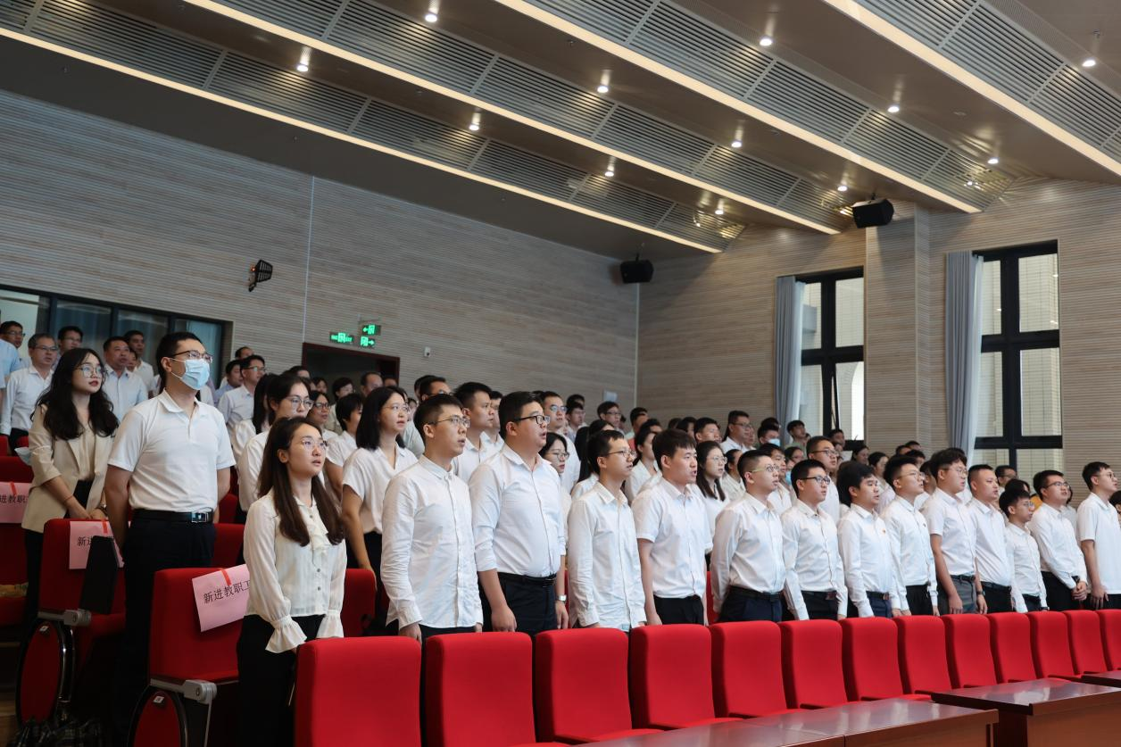 新入职教师宣誓仪式上,廖明校长带领81名新入职教师庄严宣誓。铿锵的誓言回荡报告厅,展现仲恺园丁坚守立德树人初心的担当。