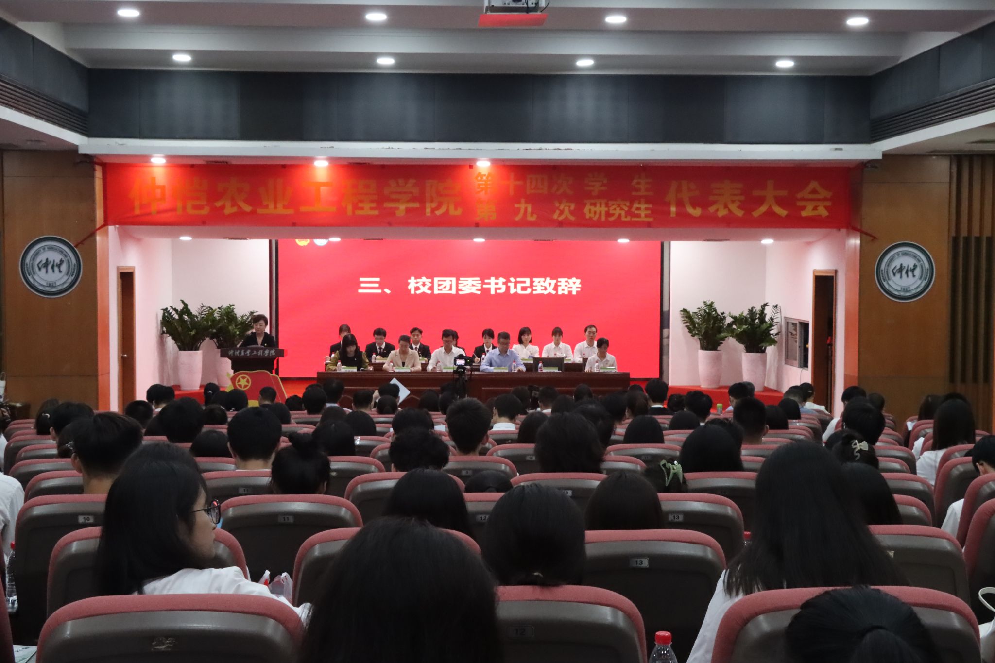 10月25日下午,仲恺农业工程学院第十四次学生代表大会、第九次研究生代表大会在海珠校区学术报告厅顺利召开。学校党委常委、副校长朱立学,党委常委、研究生部部长白卫东,学生工作部部长沈洁、校团委书记杨珊珊、组织部副部长黄海媚、威廉希尔中文官网副部长龚慧枫,各二级学院党委、团委负责人,学生会指导老师以及学生代表出席大会。