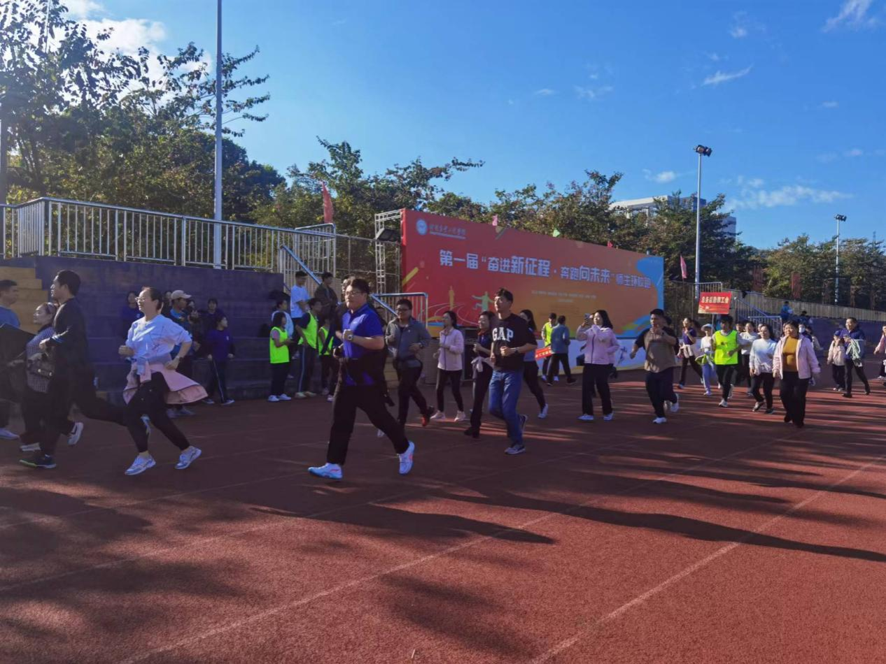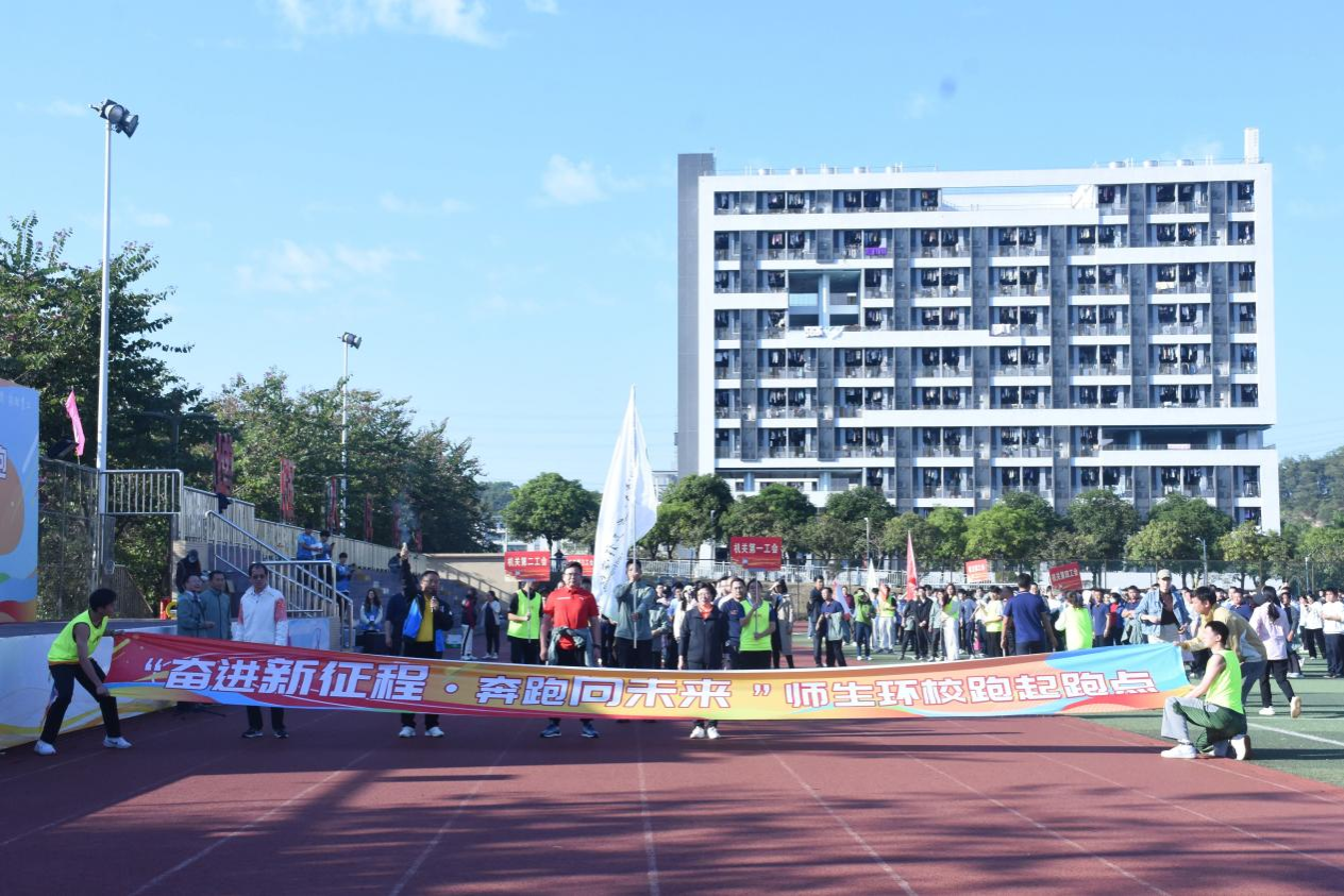 为全面贯彻落实《“健康中国 2023”规划纲要》要求,进一步促进我校阳光体育运动开展,切实提升广大师生身体素质,喜迎2024 年元旦,12月28日下午,学校举办第一届“奋进新征程 奔跑向未来”师生环校跑活动。学校党委书记宋垚臻,党委副书记、校长廖明,党委副书记、纪委书记李海燕,党委常委、副校长田允波、林俊睦出席活动并领跑,学校各二级工会、各职能部门及二级学院的1500多名师生参加活动。