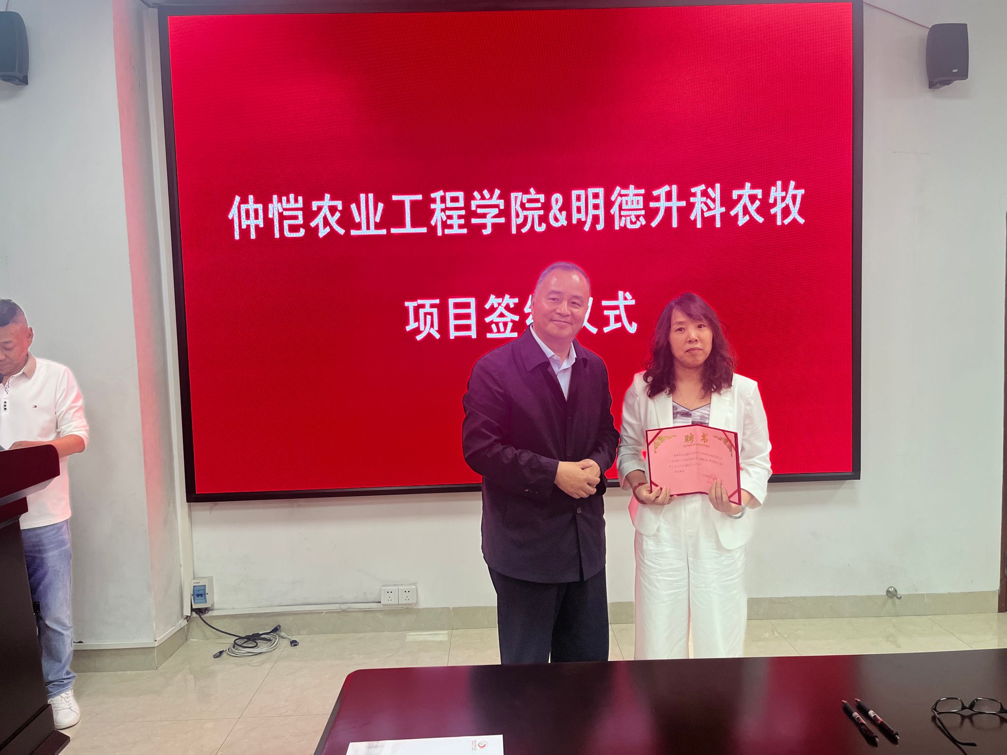 活动期间,广东明德升科农牧有限公司与我校签订了产学研合作协议,并为入站博士颁发了入站聘书,同时,武江区人社局向我校专家颁发了武江区乡村振兴人才驿站进站专家聘书。