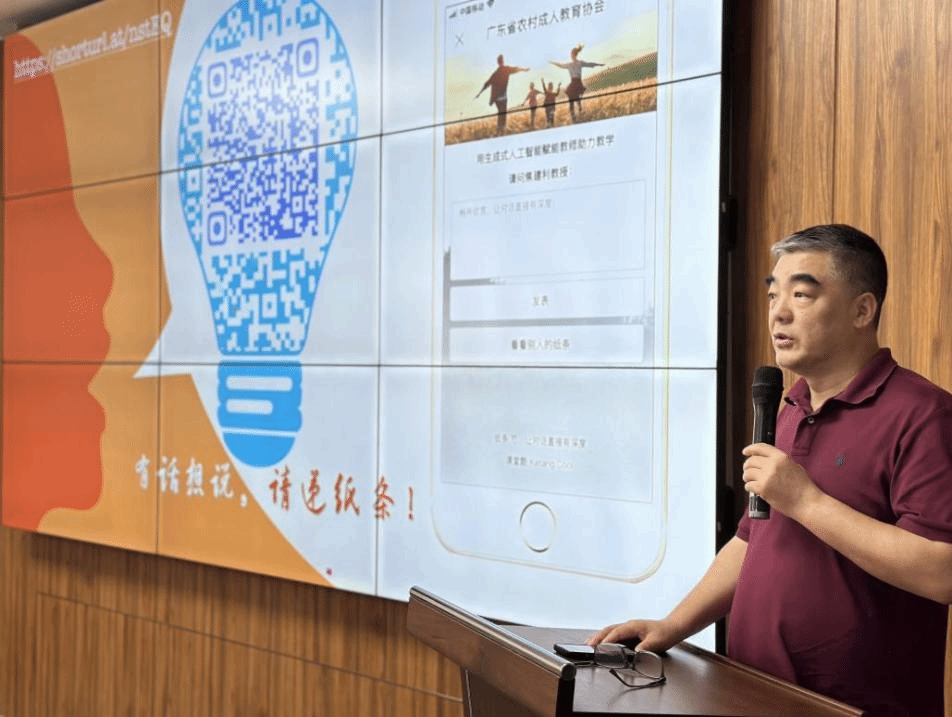 换届会议结束后,与会专家学者和会员代表就农村成人教育展开了研讨。华南师范大学教育信息技术学院学术分委员会主任、华南师范大学未来教育研究中心主任、博士研究生导师焦建利教授作《生成式人工智能赋能学校教育》主题报告,与会人员与焦建利教授进行了热烈的交流和讨论。