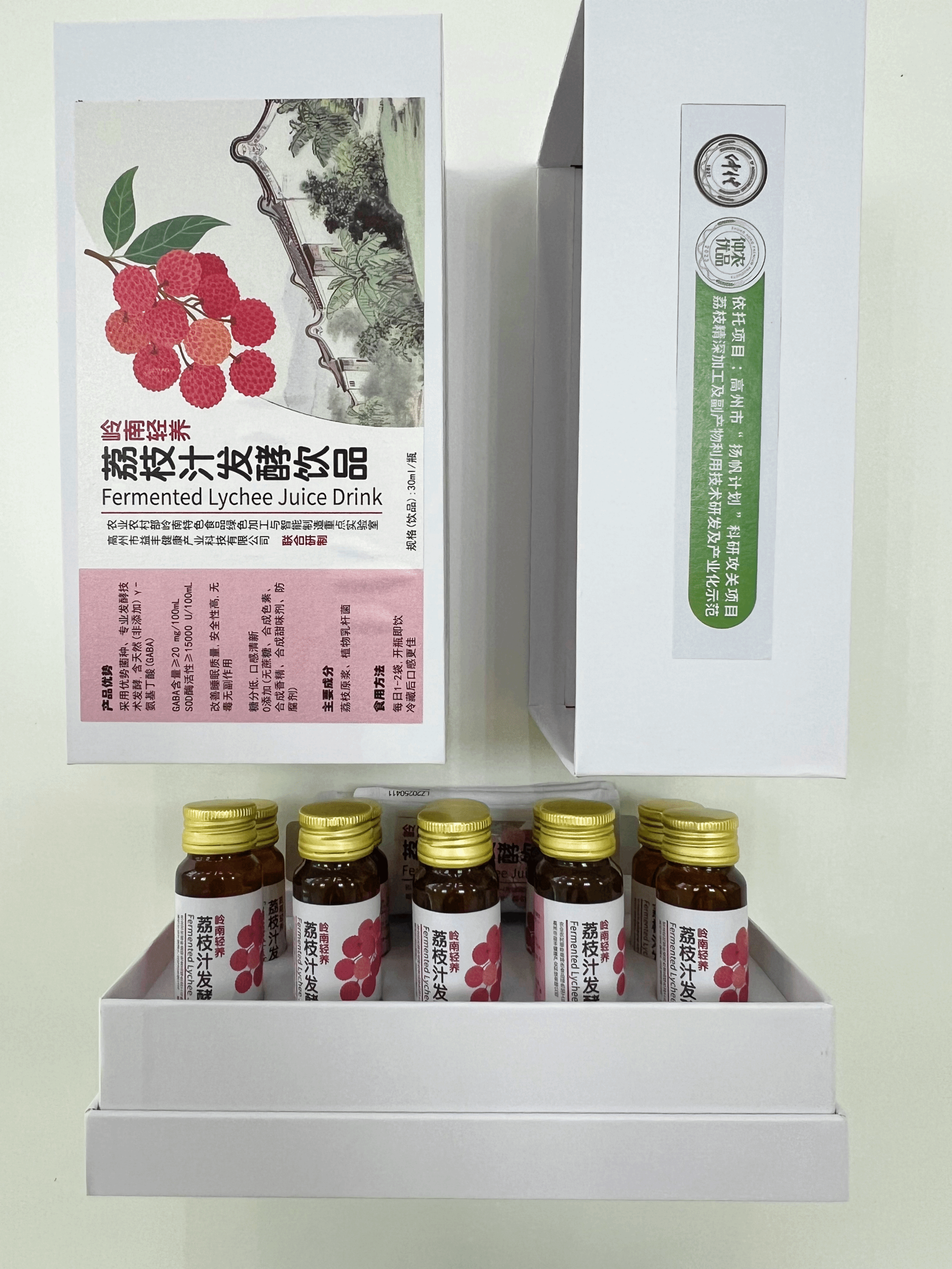行动现场展示了产学研融合的最新成果。由我校研制的荔枝汁发酵饮品首次亮相,该产品以荔枝原浆和植物乳杆菌发酵而成,糖分低、口感清新,有助改善睡眠且无副作用,目前已进入中试阶段。此外,大连理工大学生命科学与技术学院徐永平教授团队带来的荔枝渣高值化利用技术,计划在园区推广生产功能性饲料,为荔枝加工副产物找到绿色出路。