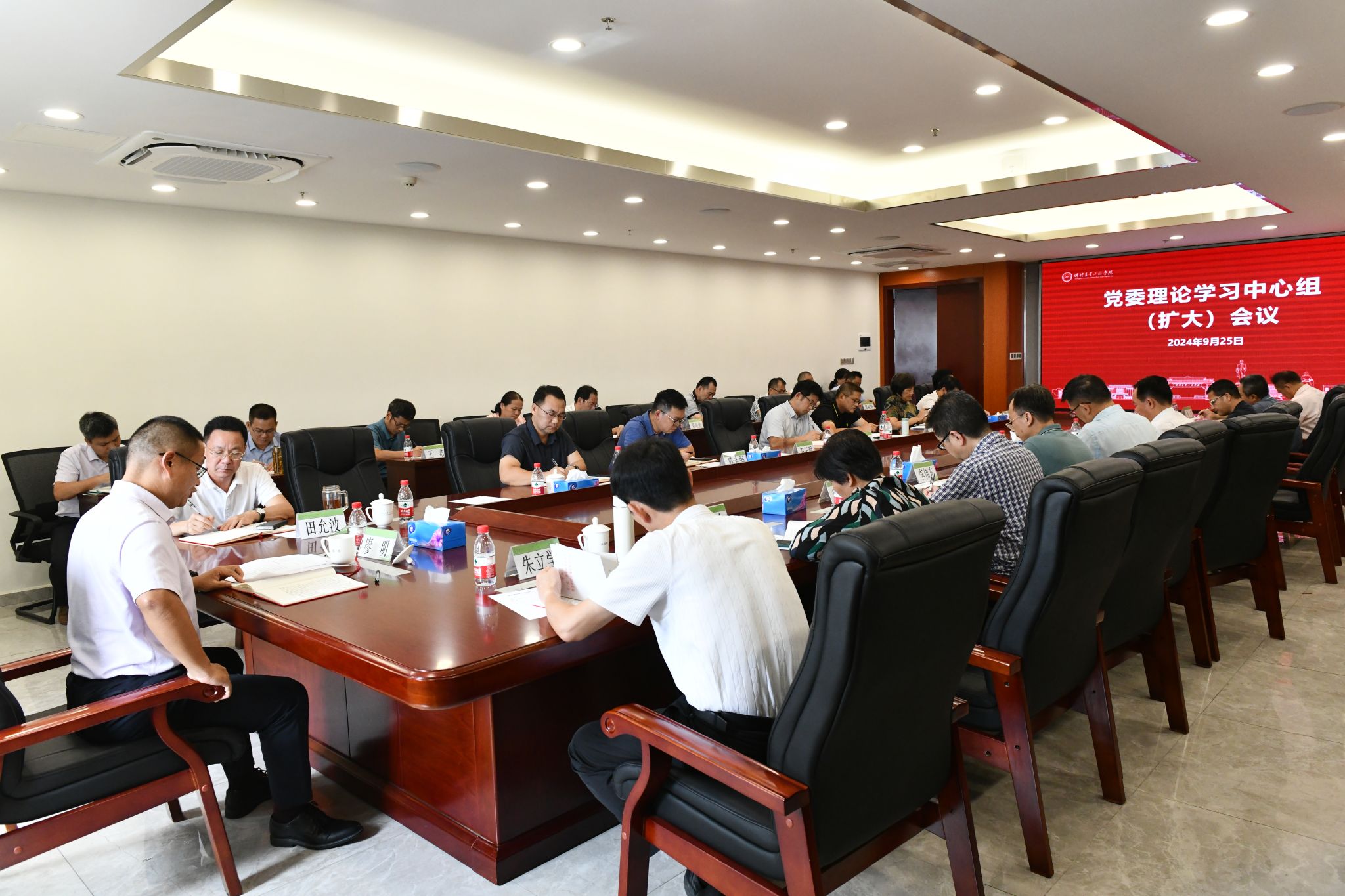 按照上级有关要求和学校工作安排,9月25日下午,学校在白云校区召开党委理论学习中心组学习(扩大)会议,专题学习习近平法治思想,学习《中华人民共和国保守国家秘密法》。党委副书记、校长廖 明主持会议并讲话,党委常委、副校长田允波、朱立学,校党委理论学习中心组成员、各二级党组织书记参加会议。