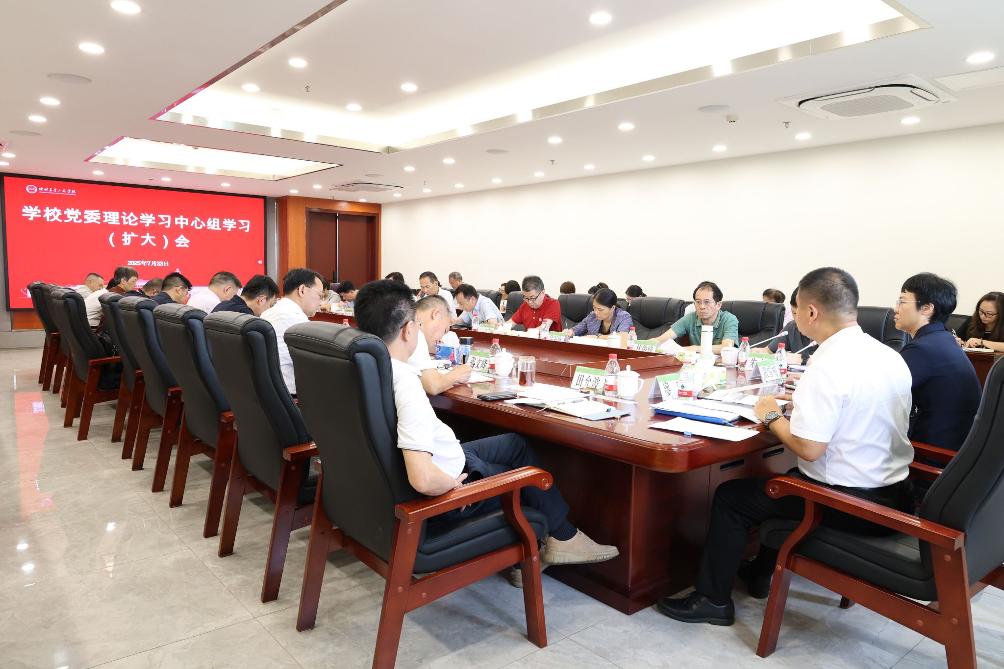 为进一步抓紧抓细深入贯彻中央八项规定精神学习教育,7月23日上午,学校在白云校区召开深入贯彻中央八项规定精神学习教育党委理论学习中心组学习(扩大)会,专题学习深入贯彻中央八项规定精神学习教育相关会议精神。学校党委理论学习中心组成员和各二级党组织书记参加会议。学校党委书记翟雪梅主持会议并讲话。