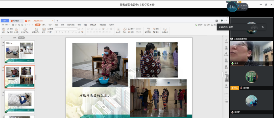 他满怀激情地分享了他们团队支援武汉的点点滴滴,从接到命令不到24小时紧急出发,从在党旗下庄严宣誓到火线入党,从方舱医院的紧急救治到最后病人出院,从队员们克服千辛万苦到离开时的依依惜别,高龙医生用他的相机,把这些感人的瞬间变成了美好的回忆,分享给了今天的大学生们.透过拍摄的图片和视频,同学们仿佛走进了支援武汉的征程中,看到了那些感人的画面,如医生和患者同心抗疫,共同起舞,在寒风中给患者消毒的支援医护人员等等感人的场景。