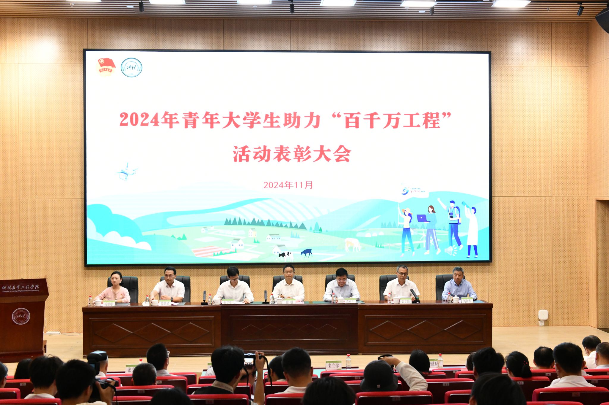 为表彰先进,选树优秀典型,深化活动效果,11月5日,学校在白云校区举行2024年青年大学生助力“百千万工程”活动表彰大会。学校党委副书记、校长廖明出席大会并作讲话,党委常委、副校长肖更生、朱立学、张文峰,威廉希尔中文官网、发展规划部、教务部、学生工作部、团委主要负责人,各二级学院党委书记、副书记,团委书记或副书记,受表彰的师生团队参加会议。大会由张文峰主持。