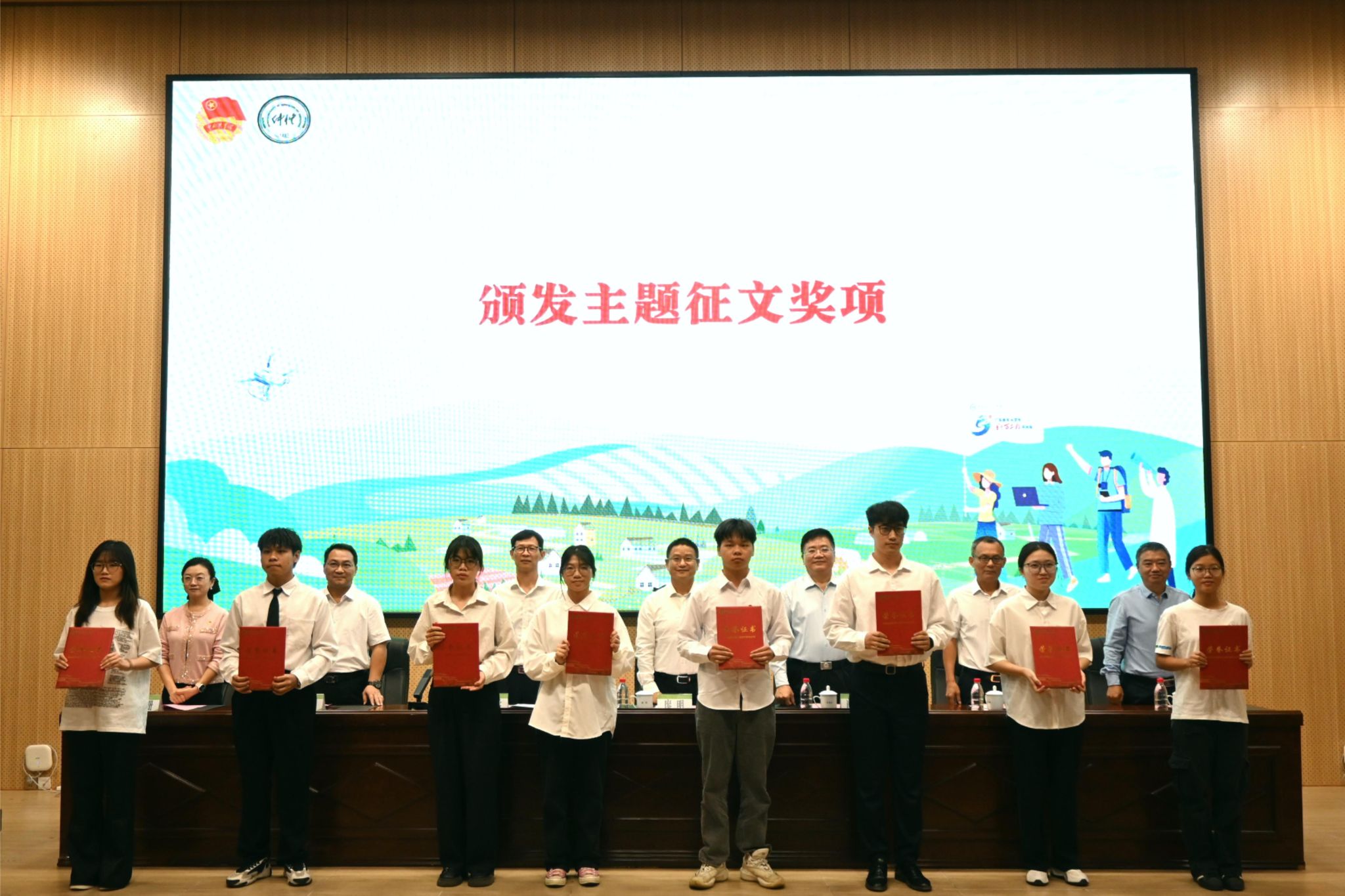 朱立学宣读2024年暑期“三下乡”社会实践活动表彰决定和“新时代大学生和‘百千万工程’”主题征集活动获奖名单。与会领导为获表彰的组织和师生代表颁奖。