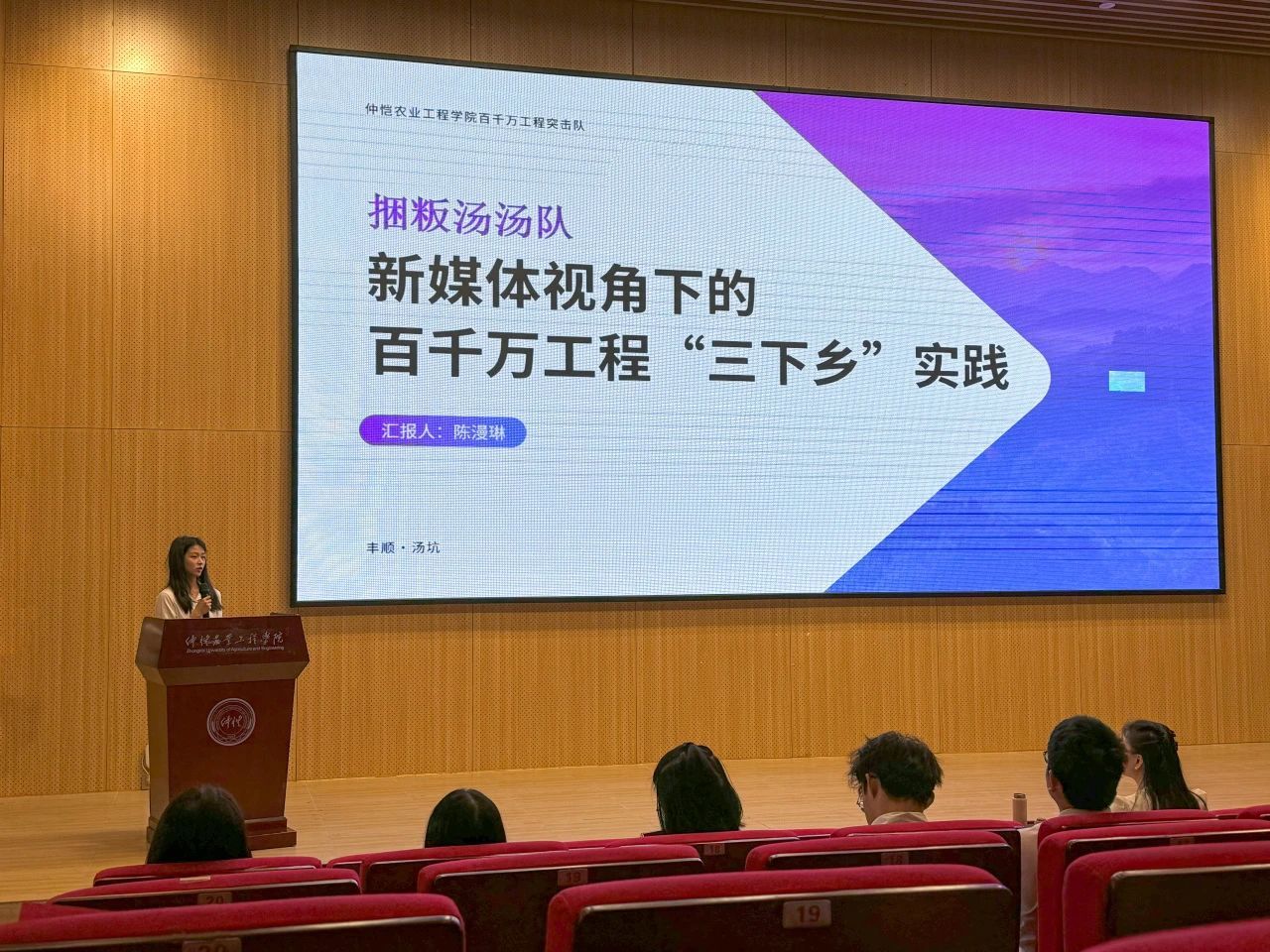 现场还举行了“青春告白祖国”暑期“三下乡”社会实践宣讲报告会,4位深度参与多届“三下乡”社会实践活动的团队主要学生负责人,分别从改善绿美人居环境助力特色村建、集合专业背景强化村居食品安全意识、剧本杀模式创新红色文化传承、新媒体+文旅视角下的乡村振兴发展等角度出发,以PPT展播及现场讲演形式开展。他们所分享的经验心得及成长收获使观众更加深刻感受到“三下乡”社会实践活动的意义和价值,激励更多青年大学生积极投身社会实践。