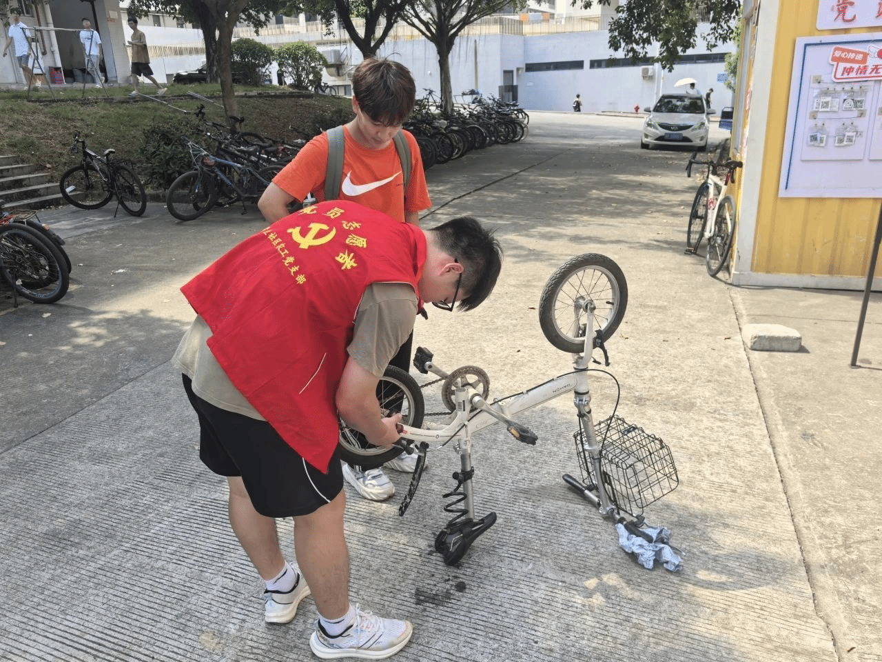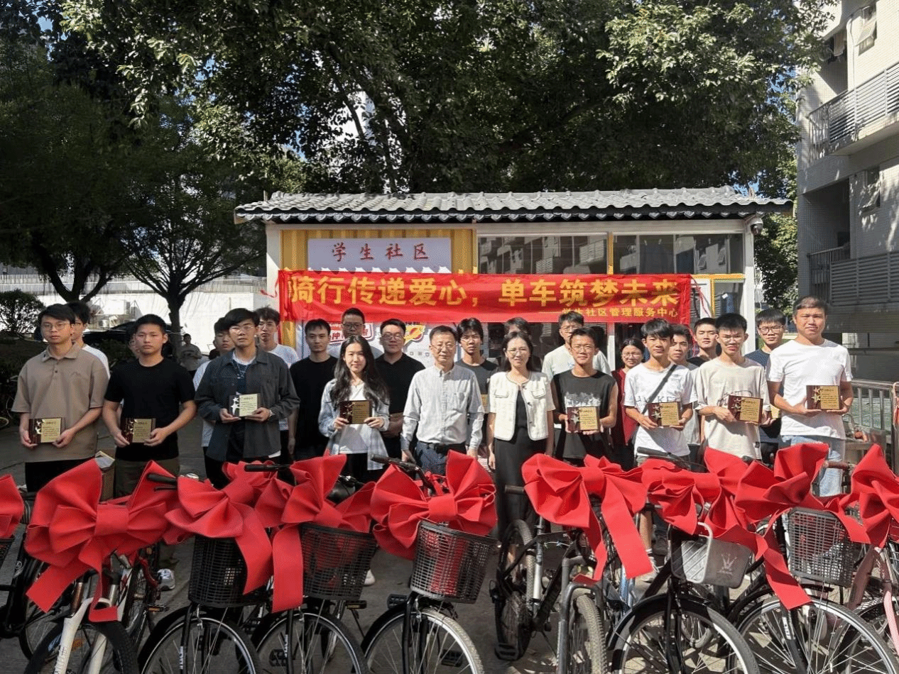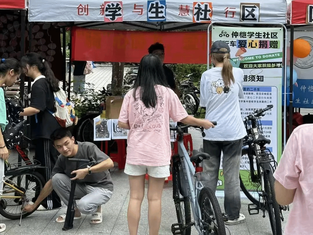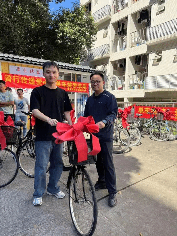 在今年6月份学生社区举办的第四届毕业季 “两捐两卖一清理” 活动中,收获了来自2024届毕业生、党员服务站-修车小铺团队、社区辅导员捐赠的15辆爱心二手自行车。暑假期间,修车小铺团队将回收的二手自行车精心维修翻新后,学生社区决定将15辆自行车捐赠给2024级家庭经济困难新生。