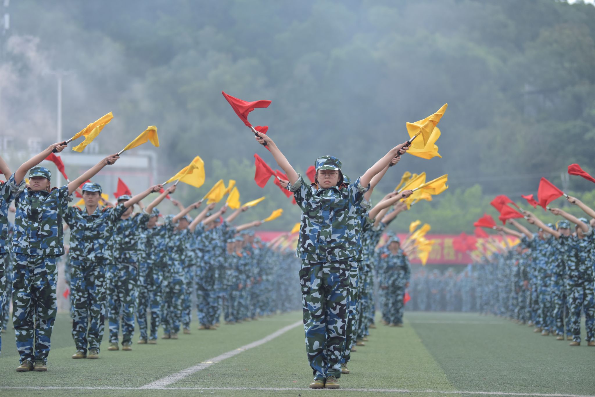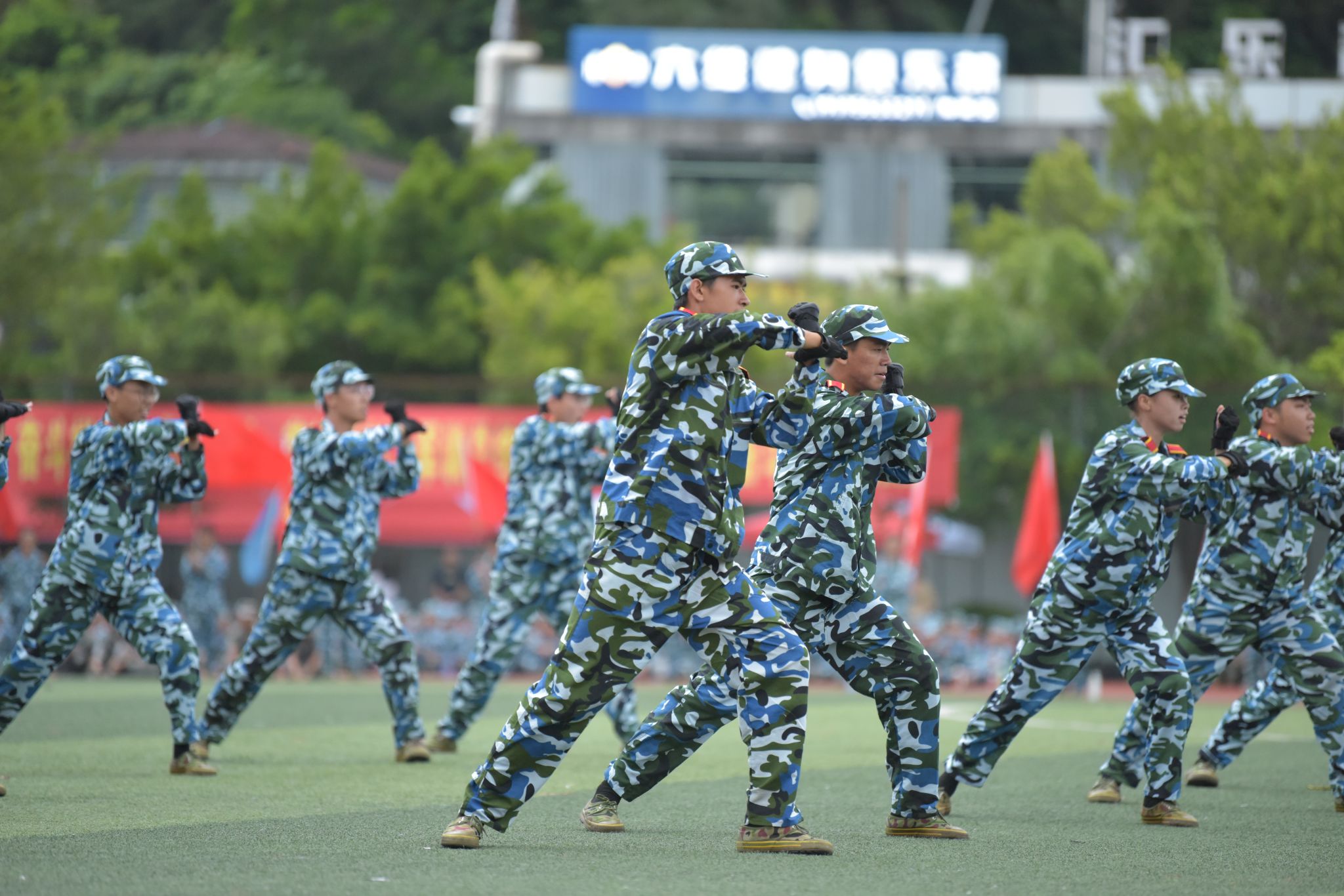 本次汇演集结了两校区全体新生。2024级全体新生迎着习习的秋风,迈着铿锵有力的步伐接受检阅。护旗方阵、各学院分列式方阵、舞旗方阵、女子花枪方阵、格斗摔擒方阵、棍术方阵、刺杀方阵、匕首方阵、警棍盾牌操方阵、战术方阵、军体拳方阵、旗语合唱方阵等先后进行了精彩的汇报展示,坚定的目光、热血的嘶吼、整齐的动作,展现着这14天以来的汗水与成长,焕发着属于仲恺学子朝气蓬勃、奋发向上的精神风貌。