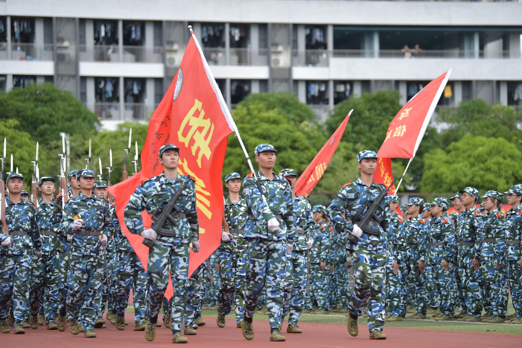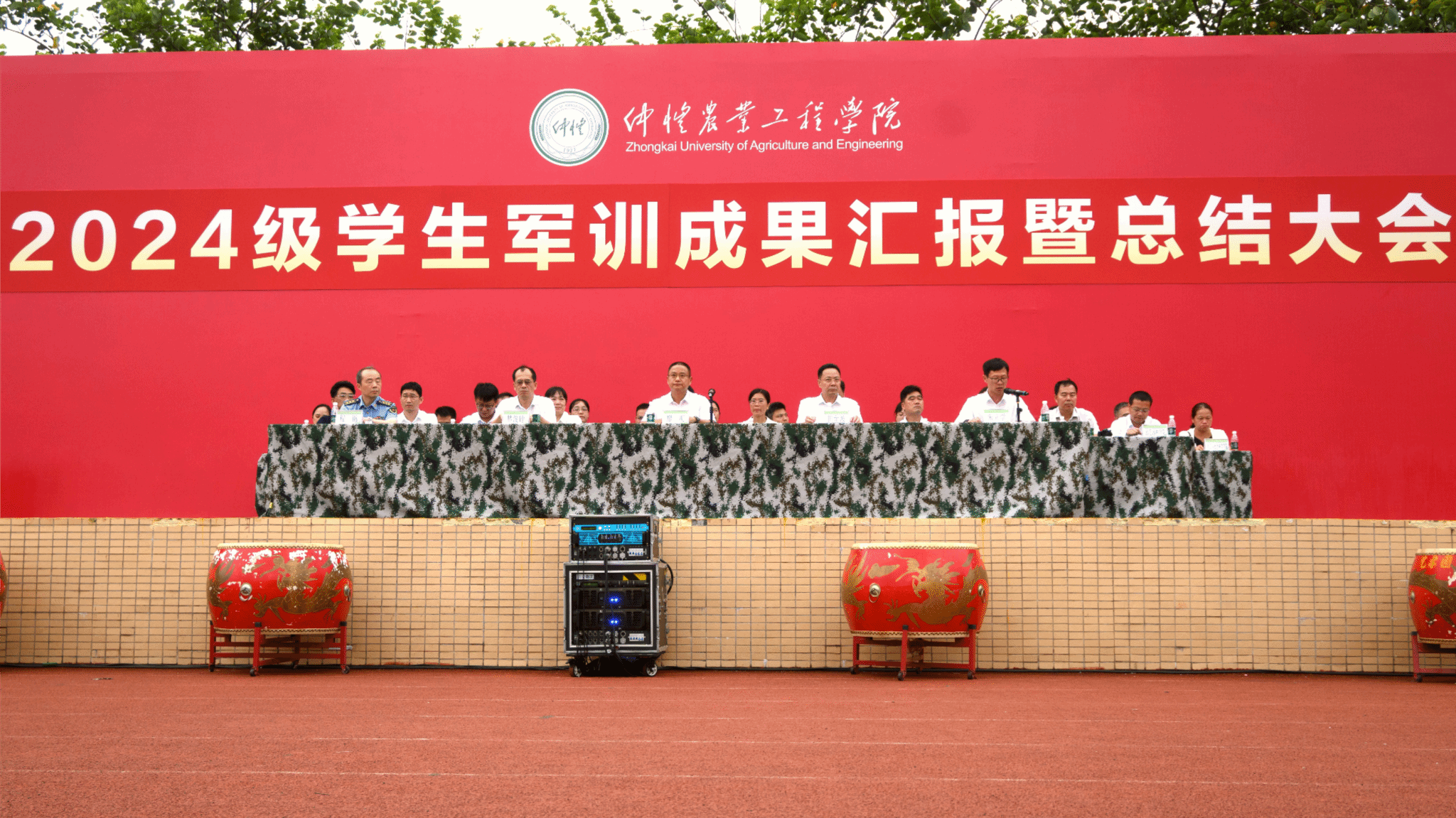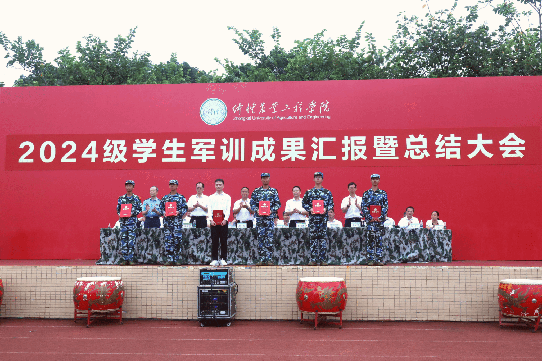 9月22日下午,学校2024级学生军训成果汇报暨总结大会在白云校区田径场举行。党委副书记、校长廖 明,党委常委、副校长田允波、林俊睦、朱立学,海珠区人民武装部上校、政委程 钢出席大会,相关职能部门、二级学院负责人、新生辅导员和班主任参加大会。朱立学主持大会。