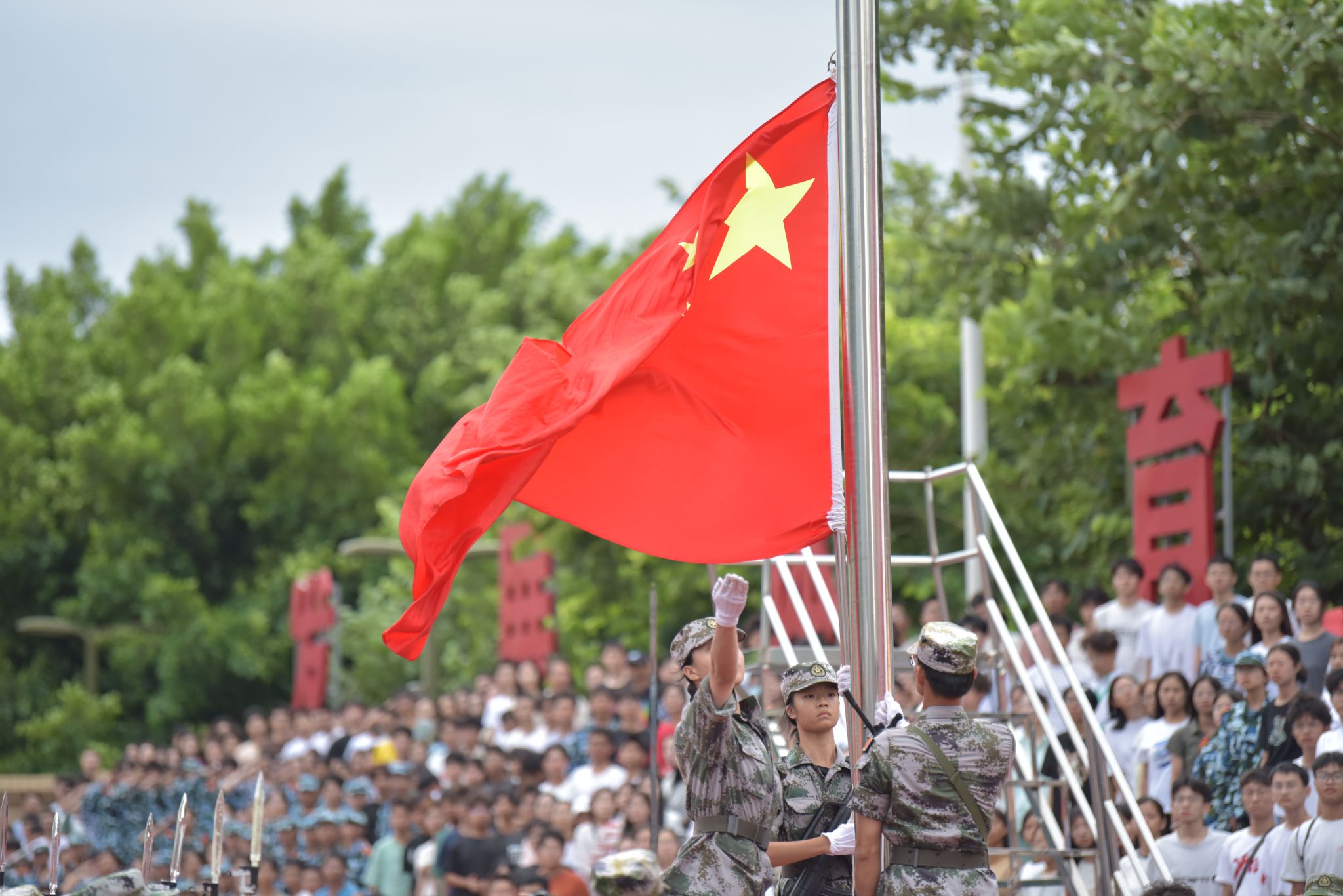 会上,廖 明代表学校党委,向一直以来支持我校军训工作的主管部门和领导,学生教官和全体带训老师表示诚挚谢意,并向圆满完成军训任务的3090名新生表示热烈祝贺。廖 明指出,新时代青年学子,肩负建设中国式现代化和民族复兴伟业的重任,不仅要有渊博的知识和强健的体魄,还要有家国情怀,高尚的品德,百折不挠的意志和令行禁止的作风。对于正式踏入大学生活的新生们,廖 明提出三点希望:一是要秉承初心、把握方向,树立“向上生长”的恒心。在日常学习生活中厚植爱党爱国爱军情怀,共筑强国强军梦想,时刻践行“祖国需要处,便是我故乡”的执着信念,笃定远大志向,奋发学习科学知识。二是要脚踏实地、实干兴邦,培养“向下扎根”的耐心。要将增长知识、锤炼品格作为大学学习的首要任务,坚持广涉猎、深钻研,把专业基础打深打牢;同时还要塑造强健体魄,练就担重任的“铁肩膀”,敢担当的“硬脊梁”,成为社会主义现代化强国建设事业中钢筋铁骨、堪当大任的栋梁之才。三是要昂扬斗志、踔厉奋发,夯实“不惧风雨”的信心。新时代的仲恺学子要保持责任感、使命感和紧迫感,勇立时代潮头,勇担时代重任,发扬敢为人先的创新精神,能够在实现中华民族伟大复兴中国梦的伟大实践中挥洒智慧、展示才干、实现理想。