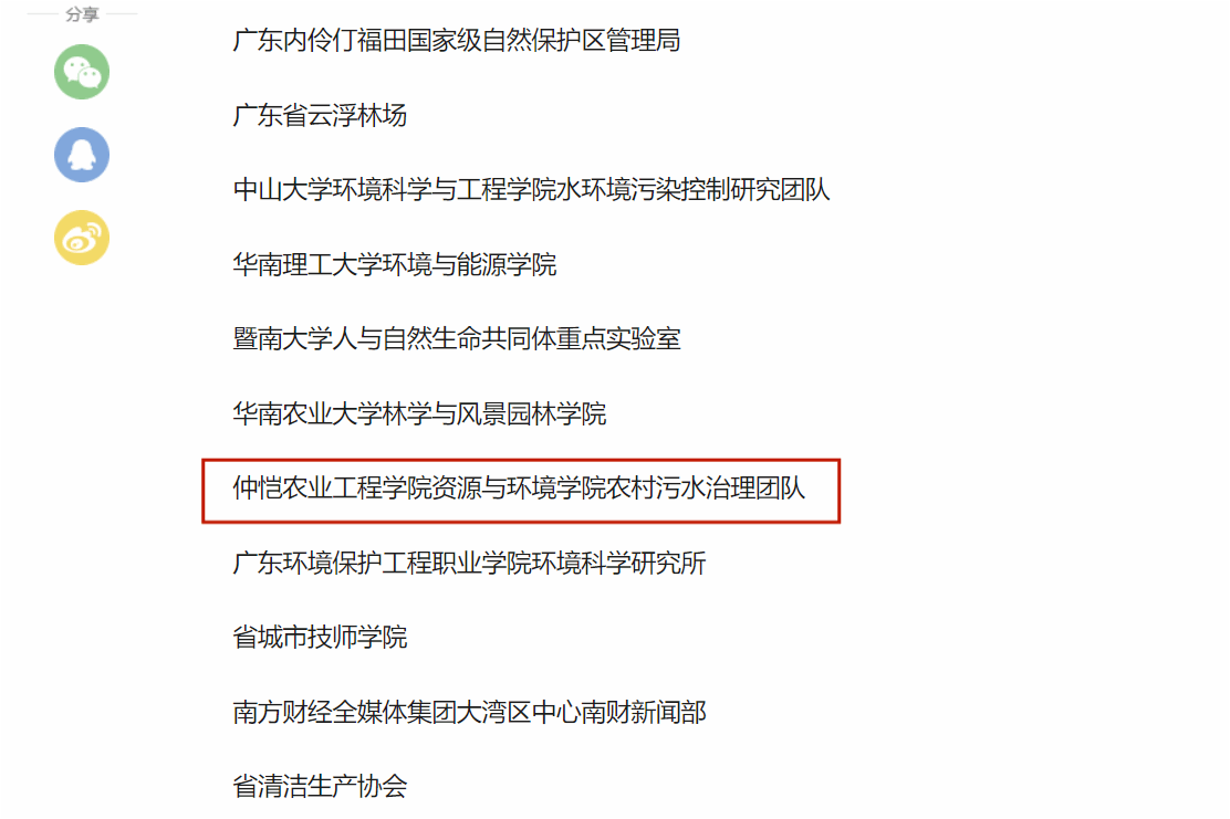 近期,中共广东省委办公厅、广东省人民政府办公厅发布了关于对推进绿美广东生态建设工作表现突出集体和个人给予表扬的通报,资源与环境学院农村污水治理团队获得绿美广东生态建设工作表现突出集体称号。