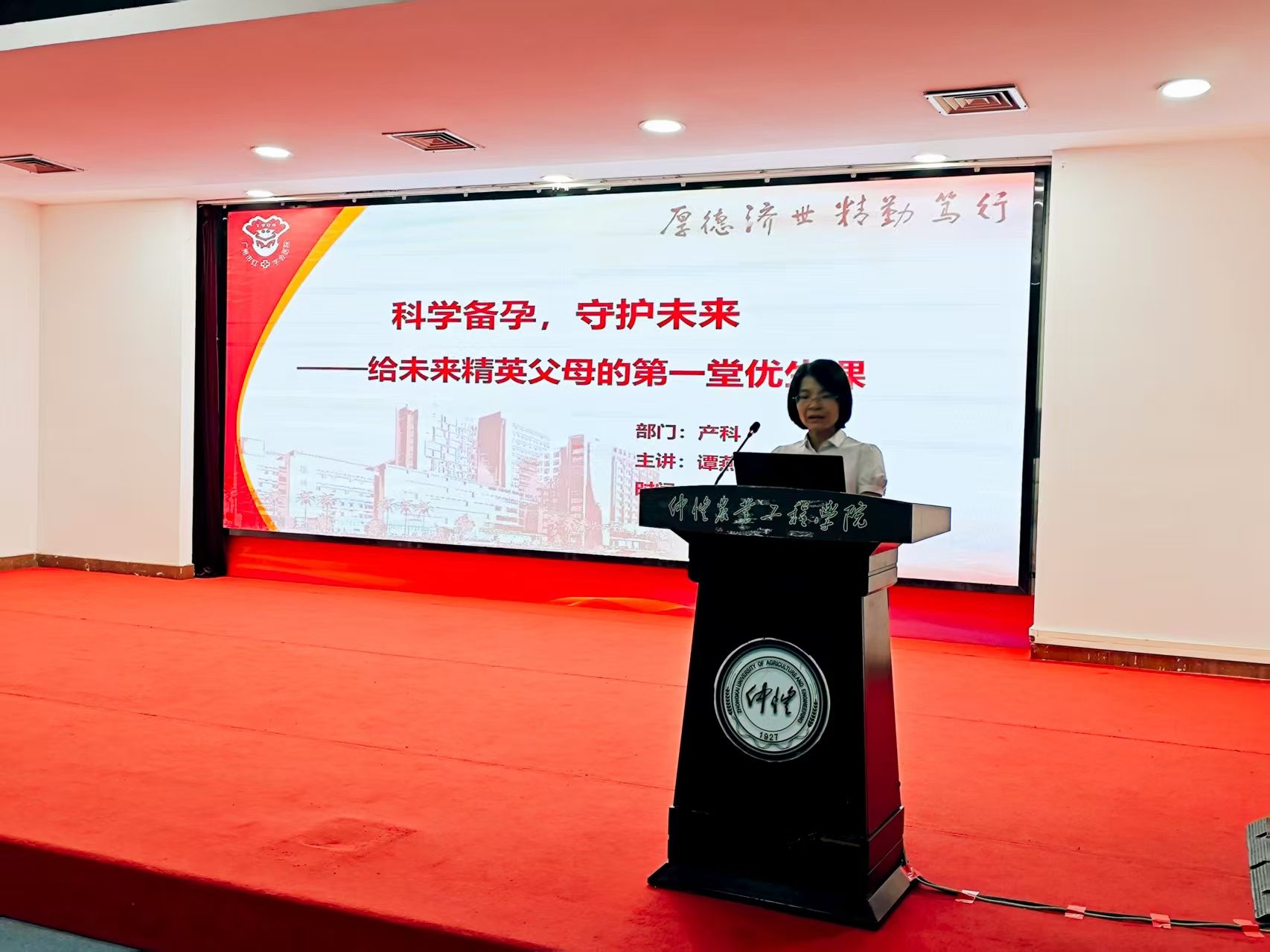 谭燕主任医师,现任广州市红十字会产科主任、医学博士、硕士生导师。她以“科学备孕,守护未来 ——给未来精英父母的第一堂优生课”为主题,深入浅出地讲解了预防出生缺陷的三道关键防线、孕前及孕期需要关注的核心风险因素,并指导大家如何规划科学备孕计划。她指出:久站久坐与熬夜会对精子、卵子质量造成潜在危害;而构建婚前孕前保健、产前筛查与诊断、新生儿筛查这三道坚固防线,是预防出生缺陷的关键。此外,谭主任还详细介绍了国家免费孕优检查的内容、常见单基因遗传病、叶酸补充方案以及备孕期疫苗接种指导等知识,强调改变生活方式,如戒烟戒酒、均衡营养、适度运动、保持标准体重等的重要性。