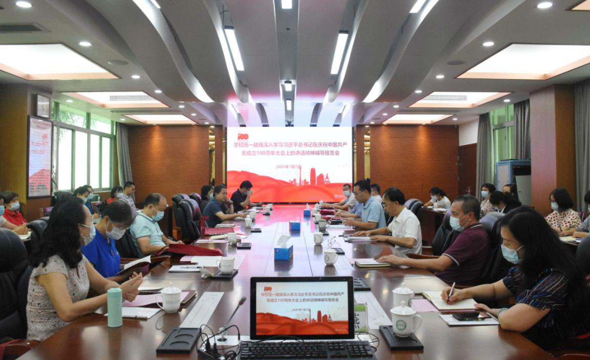 7月7日下午,我校组织统一战线专题学习辅导报告会学习传达习近平总书记在庆祝中国共产党成立100周年大会上的重要讲话精神,并通过党史专题宣讲以及交流座谈,加深统一战线成员对重要讲话精神的学习领悟。学校党委常委、宣传部统战部部长曾献尼出席会议并讲话,学校各民主党派、统战团体成员参会。会议由党委委员、党委统战部常务副部长何军峰主持。